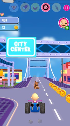 2. 在驾驶过程中,玩家可收集散落在路径上的金币,通过操控婴儿车触碰金币实现获取。