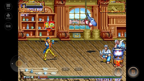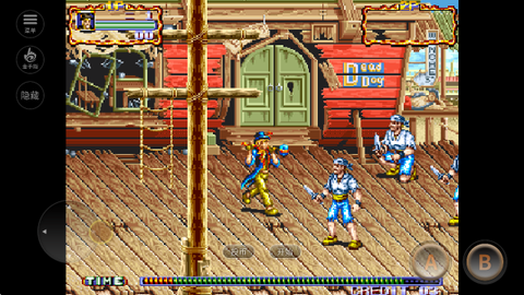 4、操作映射,进入游戏后你将康总控制角色进行战斗,左边控制角色移动方向,右边 A 键攻击、B 键跳跃。