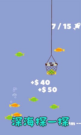 4、在探险中,各种色彩缤纷的鱼类应有尽有,不过要小心那些人类投放的陷阱,小心你的鲨鱼血量!