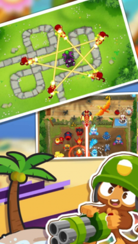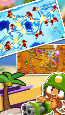 1、开局给你三只猴子和一堆椰子,二十关后你会在凌晨三点研究"如何用风筝塔触发海啸特效"。这游戏有种诡异的魔力,让你觉得下次一定能摆出完美阵型。